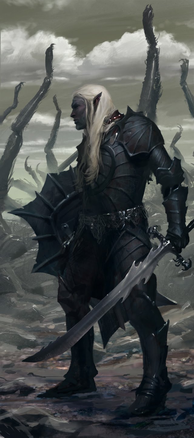 As for drow, I'm happy to see the sensuality taken up a notch, though I still don't think "stereotypical slutty fantasy armor" is appropriate. I also picture drow as being a little more muscular than their surface world cousins. Slim, wiry, hard like steel, smooth as silk. That's the drow.