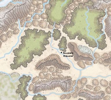 EDIT: Just found you thread over at Paizo, and my 'best guess' suggestion would be in Fallen Sessrendale, which is located between Cormyr, Sembia, and the Dalelands. Since it is a 'lost' Dale, moving Falcon's hollow there disturbs almost nothing (as far as I can tell without more info). |