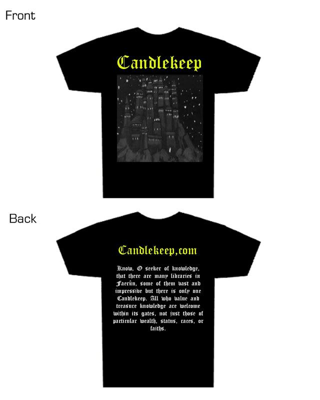Sage I am happy to see you joining the discussions about the T-shirt fore Candlekeep.