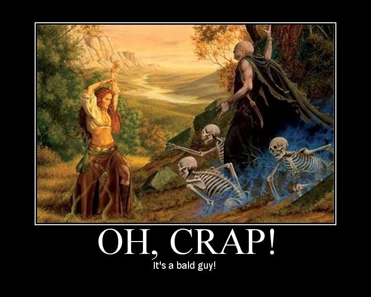 I guess my subconscious still has a little bit of the 5 year old who thought it made them look girly rather than heroic. I'm not saying I think this now (because that's ridiculous), I'm just saying I'm pretty sure I thought that when I was a kid and it's some lingering reason I always realize I'm picturing someone wrong until the author starts to describe their hair. Or just the nature of the way my brain switches out hairstyles as I'm reading...it is sort of weirdly dramatic, and draws attention to itself a lot more than if I had screwed up even just hair color. I'm sure I've been equally programmed to think that about baldness as well and don't even realize it, as we will attribute my own haircut to the possible reasons my driver's license picture looks a little sinister (credit the scowl with the rest--but the lady at the DMV told me not to smile! Wise, then I certainly would have looked psychotic).